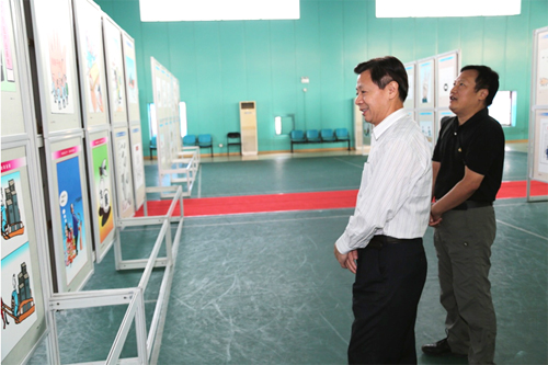 这次展览共分中华民族伟大复兴的中国梦,空谈误国、实干兴邦,狠刹四风、落实中央八项规定以及廉政准则解读等8个部分,参展的200余幅漫画作品全部来自于“中国民间文化艺术之乡”——河北邱县的基层创作。这些作品创造性地将廉政文化建设与地方特色文化有机融合,充分发挥漫画讽刺、幽默的优势,以独具特色的视角揭示反腐倡廉主题,反映社会热点问题,鞭鞑贪污腐败、行贿受贿、“买官卖官”等歪风,颂扬落实“八项规定”、勤政为民的廉政新风,寓意深刻,针砭时弊,发人深思,耐人寻味,使反腐倡廉这个严肃沉重的话题变得生动活泼、喜闻乐见。