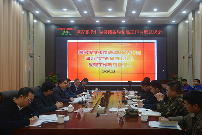 为深化践行党的群众路线,认真落实党员领导干部基层联系点制度,2020年12月8日,国家365bet客户端下载_英国365bet体育_国内在365投注和物资储备局党组成员、副局长、直属机关党委书记卢景波带队赴广西局四七九处开展党建专题调研。卢景波一行参观了四七九处党员政治活动室和国储物资库房、军民融合物资库房,听取了广西局分党组全面从严治党情况汇报和四七九处党委党建工作情况汇报,与基层一线党员干部进行座谈交流,认真听取意见建议。