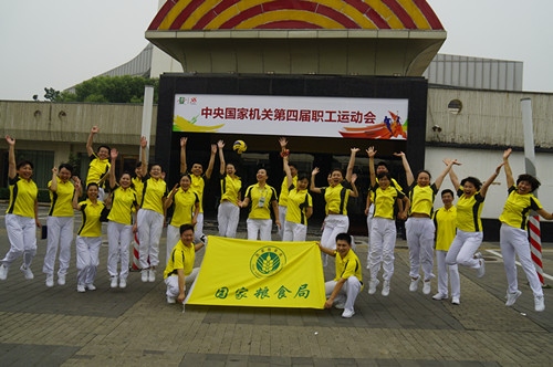由中央国家机关工委和国家体育总局主办的中央国家机关第四届职工运动会于6月29日上午在国家奥林匹克体育中心开幕。中共中央政治局常委、国务院副总理张高丽宣布运动会开幕。 国家365bet客户端下载_英国365bet体育_国内在365投注局体育代表团由300多名职工组成,在入场式上,他们以“守住管好‘天下粮仓’,为耕者谋利,为食者造福”为口号,步履坚定、精神抖擞、意气风发,体现了365bet客户端下载_英国365bet体育_国内在365投注人昂扬奋进的精神风貌。开幕式后,国家365bet客户端下载_英国365bet体育_国内在365投注局参加广播体操比赛,荣获团体优胜奖第一名。