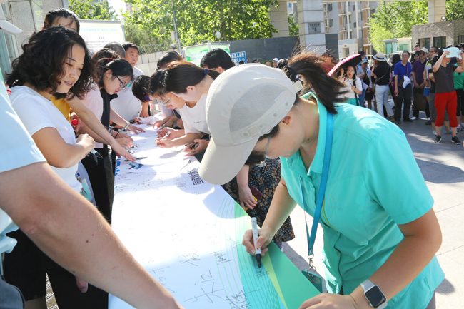 在活动现场,局领导带头在活动宣传横幅上签字,干部职工代表宣读《行为节能做表率 绿色办公我先行倡议书》,广大干部职工共同作出反对铺张浪费、践行绿色发展理念的承诺。之后,局领导带领来自各司局、直属联系单位的200余名干部职工,步行前往玉渊潭公园开展健步走活动。
