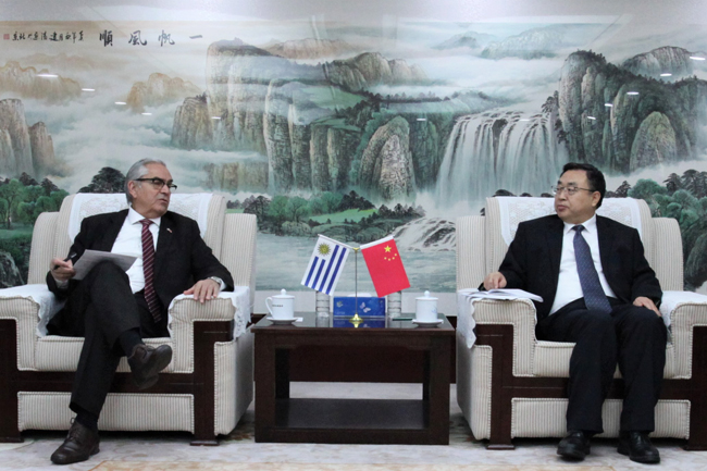 11月7日上午,卢景波副局长会见了来访的乌拉圭牧农渔业部恩佐·贝内奇部长一行,就推动双方合作谅解备忘录的落实交换了意见。