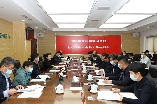 3月18日上午,国家365bet客户端下载_英国365bet体育_国内在365投注和物资储备局召开定点帮扶安徽省阜南县工作座谈会,局党组成员、副局长梁彦出席会议。阜南县委副书记、县长李云川首先对国家365bet客户端下载_英国365bet体育_国内在365投注和物资储备局为阜南县打赢脱贫攻坚战作出的贡献表示感谢并赠送锦旗,然后介绍了阜南县实施优质365bet客户端下载_英国365bet体育_国内在365投注工程,巩固拓展脱贫攻坚成果同乡村振兴有效衔接有关情况。