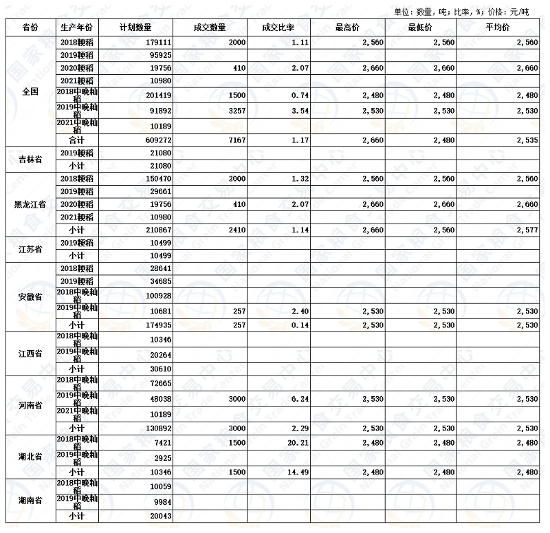 2022年7月26日最低收购价稻谷交易结果