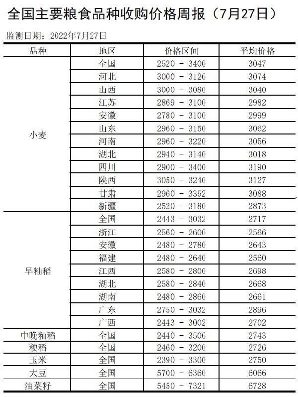 全国主要365bet客户端下载_英国365bet体育_国内在365投注品种收购价格周报(7月27日)