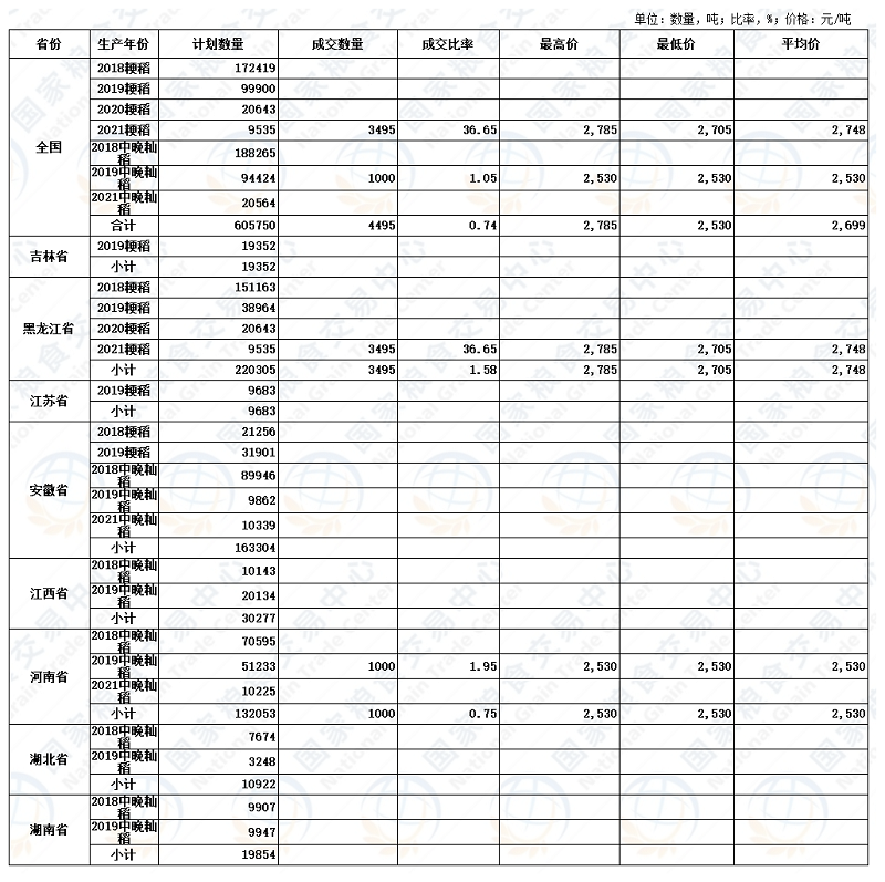 2022年8月23日最低收购价稻谷交易结果