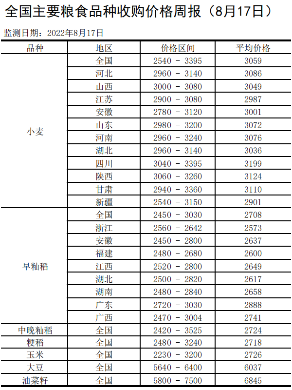 全国主要365bet客户端下载_英国365bet体育_国内在365投注品种收购价格周报(8月17日)