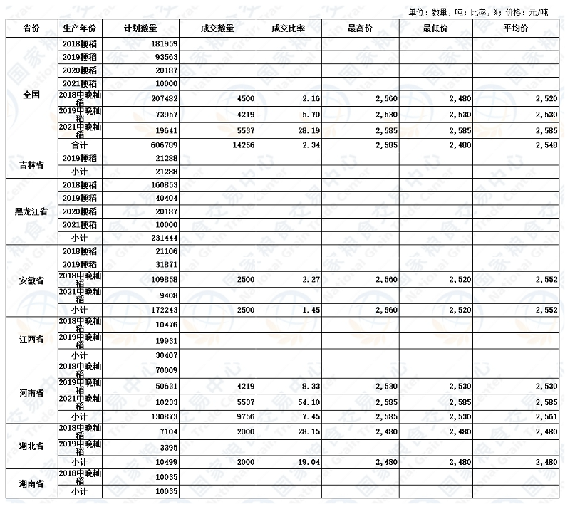 2022年9月13日最低收购价稻谷交易结果