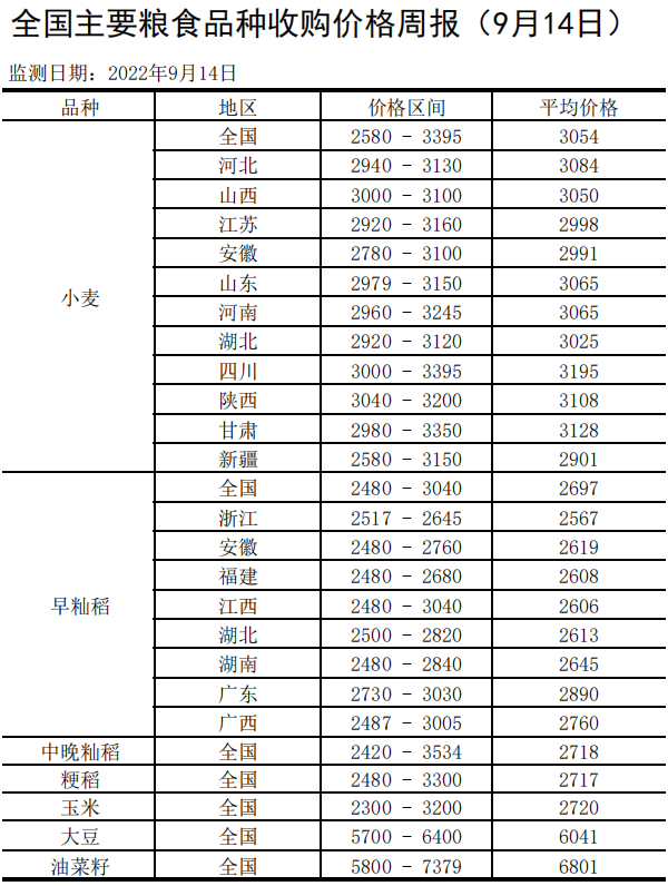 全国主要365bet客户端下载_英国365bet体育_国内在365投注品种收购价格周报(9月14日)