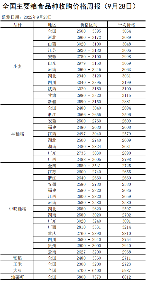 全国主要365bet客户端下载_英国365bet体育_国内在365投注品种收购价格周报(9月28日)