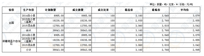 2022年11月9日国家临时存储小麦交易结果