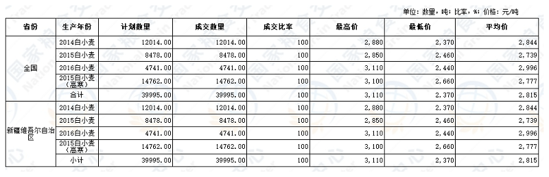 2022年11月23日国家临时存储小麦交易结果
