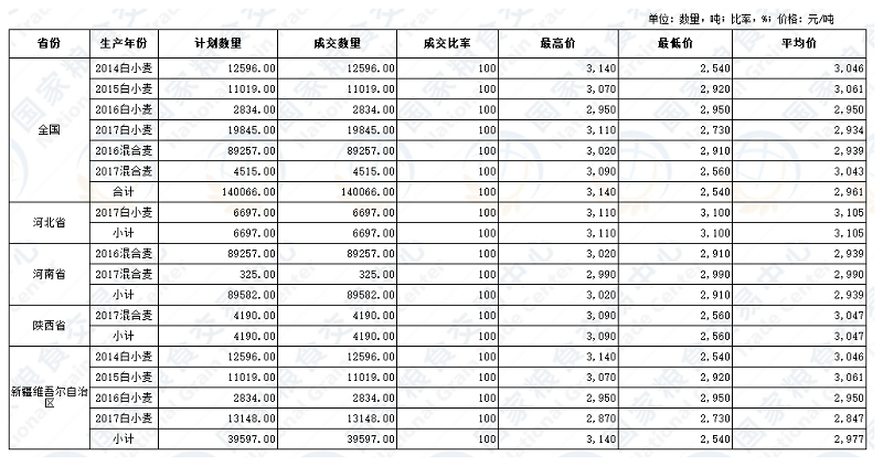 2023年1月18日最低收购价和国家临时存储小麦交易结果