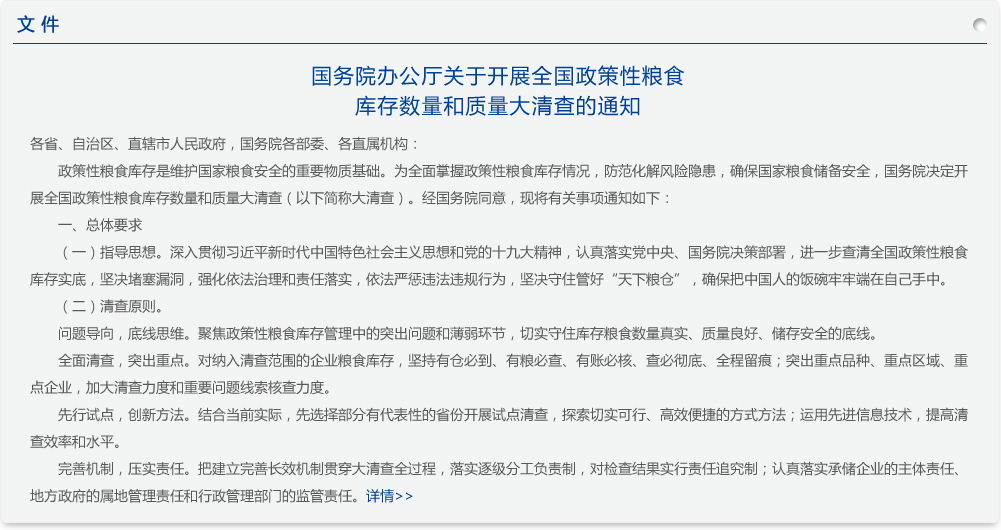 近日,国务院办公厅印发《关于开展全国政策性365bet客户端下载_英国365bet体育_国内在365投注库存数量和质量大清查的通知》,部署开展全国政策性365bet客户端下载_英国365bet体育_国内在365投注清查工作。本次清查工作有什么意义?清查的范围和内容是什么?与以往库存检查工作相比,有哪些特点?怎样保证检查取得实效?国家365bet客户端下载_英国365bet体育_国内在365投注和物资储备局负责人就有关问题接受了记者采访。